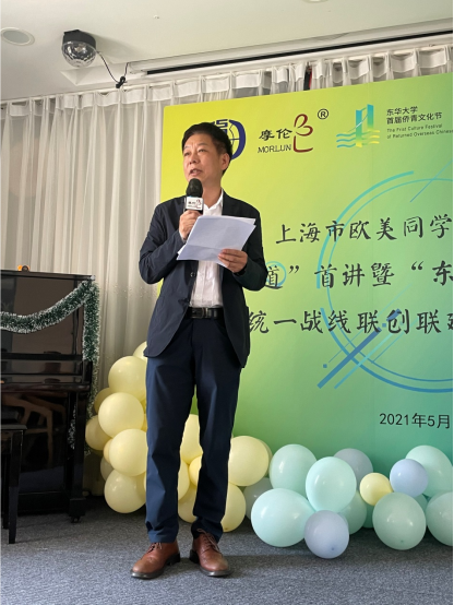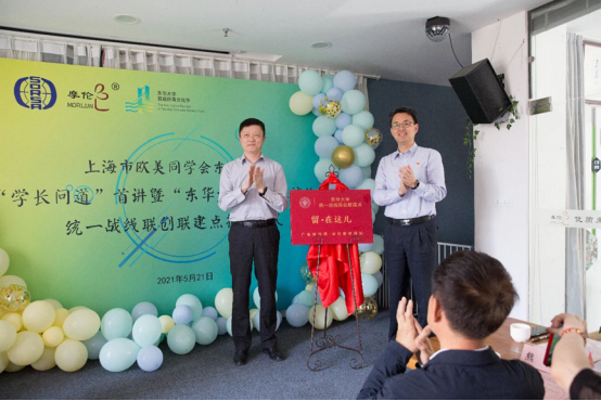 5月21日下午,东华大学分会在广富林街道摩伦新侨驿站举办“学长问道”首讲暨“东华大学·留在这儿”统一战线联创联建点揭牌仪式活动。
