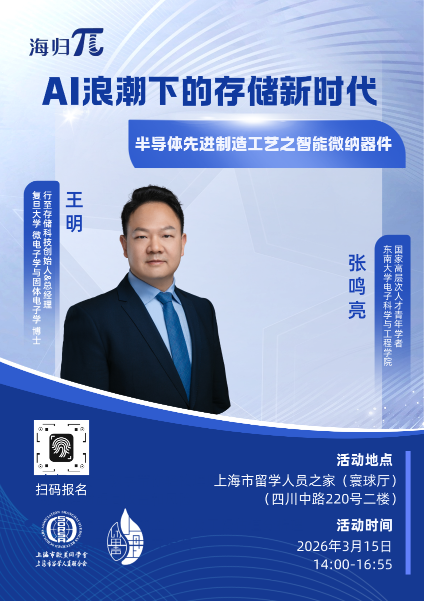 跨界破界,成长无界,“海归π”继续赋能海归创新创业。3月15日,下一期上海市留学人员之家“海归π”将聚焦“AI浪潮下的存储新时代”,一起探讨“半导体先进制造工艺”等话题。敬请期待!