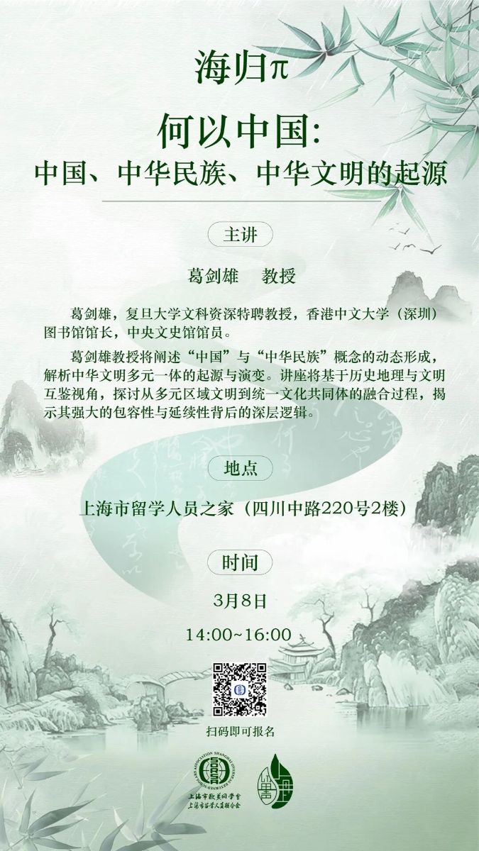 洞察大国博弈之后,“海归π”思想流变而不息。3月8日,下一期上海市留学人员之家“海归π”将聚焦“何以中国:中国、中华民族、中华文明的起源”,一起探讨“从多元区域文明到统一文化共同体的融合过程”等话题。敬请期待!