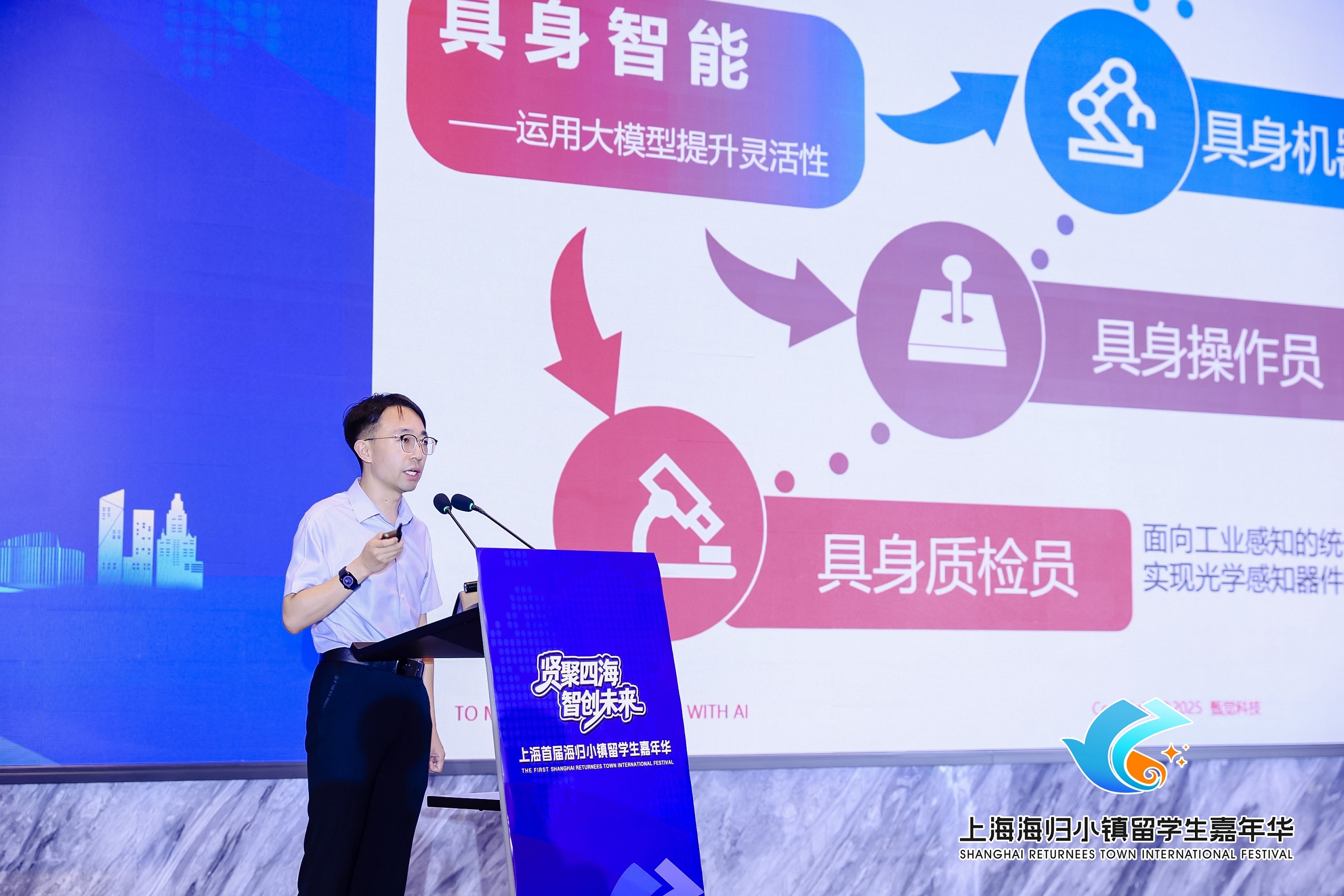 开幕式在奉贤海归小镇宣传片《归海亦归心》的播放中拉开帷幕,海归人才扎根梦想的热忱与奉贤区求贤若渴的诚意双向奔赴,为本届留学生嘉年华奠定了“贤聚四海 智创未来”的基调。