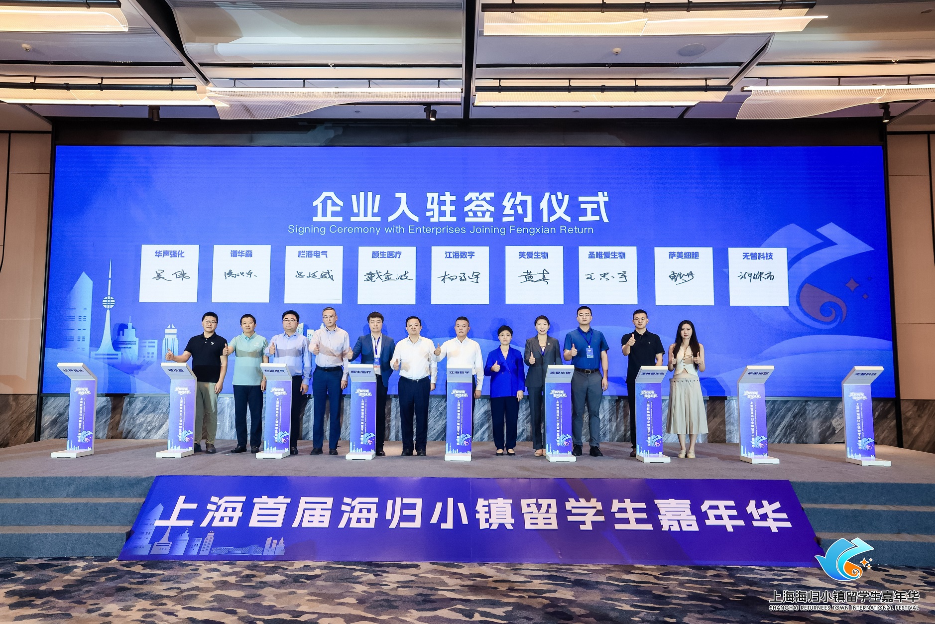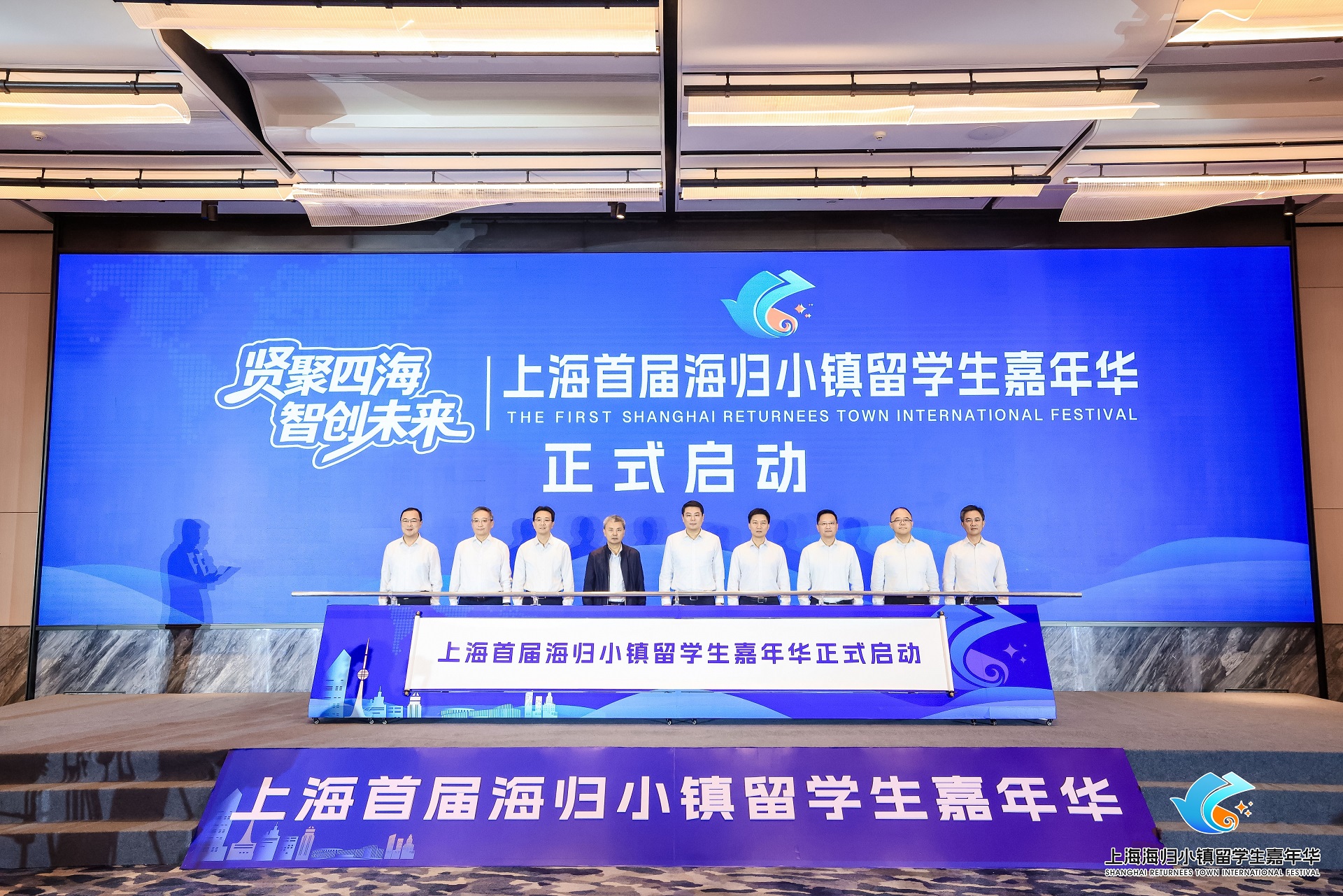 本次活动由奉贤区人民政府、上海市欧美同学会、上海市青年联合会、上海临港经济发展(集团)有限公司主办,欧美同学会海归小镇(奉贤·生物科技)、奉贤区海外联谊会、上海市海聚英才发展促进会、寰球校友会联盟承办。上海市委组织部副部长、市人才局局长潘晓岗,市委统战部副部长张峰,欧美同学会副会长、市欧美同学会会长李林,奉贤区委书记袁泉,奉贤区委副书记、区长王益群,奉贤区人大常委会主任张培荣,奉贤区政协主席陈勇章,临港集团党委副书记、总裁翁恺宁,团市委副书记、市青联主席邬斌共同为首届海归小镇留学生嘉年华推杆启幕。奉贤区相关委办单位负责人,市欧美同学会、市青联、临港集团相关负责人,海内外高校校长代表、企业领袖、留学人员及各界嘉宾共聚一堂,共同见证海归人才共聚共享的盛会。