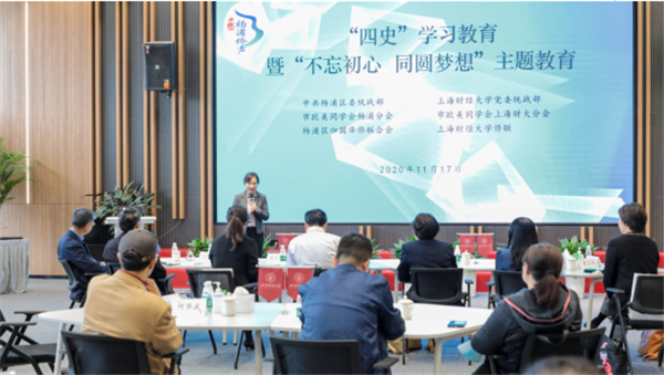 11月17日下午,由中共杨浦区委统战部、上海财经大学党委统战部主办,我会杨浦分会和上财分会等共同承办的“四史”学习暨“不忘初心、同圆梦想”主题教育活动在财大科技园顺利举办。上海财经大学常务副校长徐飞,我会党组成员、专职副会长兼秘书长朱玲玲,杨浦区委常委、统战部部长董鑫旺等出席活动,上海财经大学党委常委、统战部部长周杰普主持。