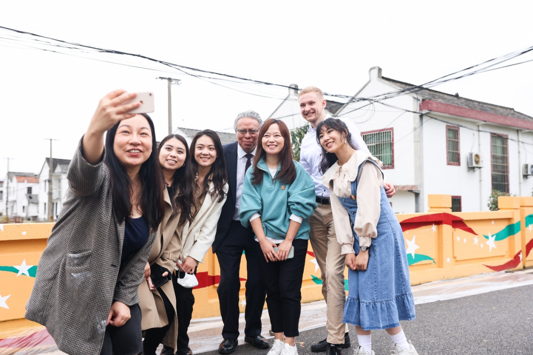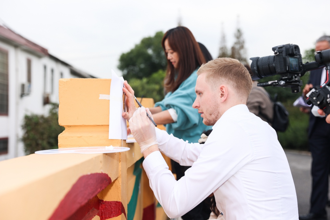 下午与会人员一行到达松江区新浜镇文华村进行“中墨友谊桥”现场的绘制。活动在参观上海松江区新农村的愉快氛围中顺利收关。