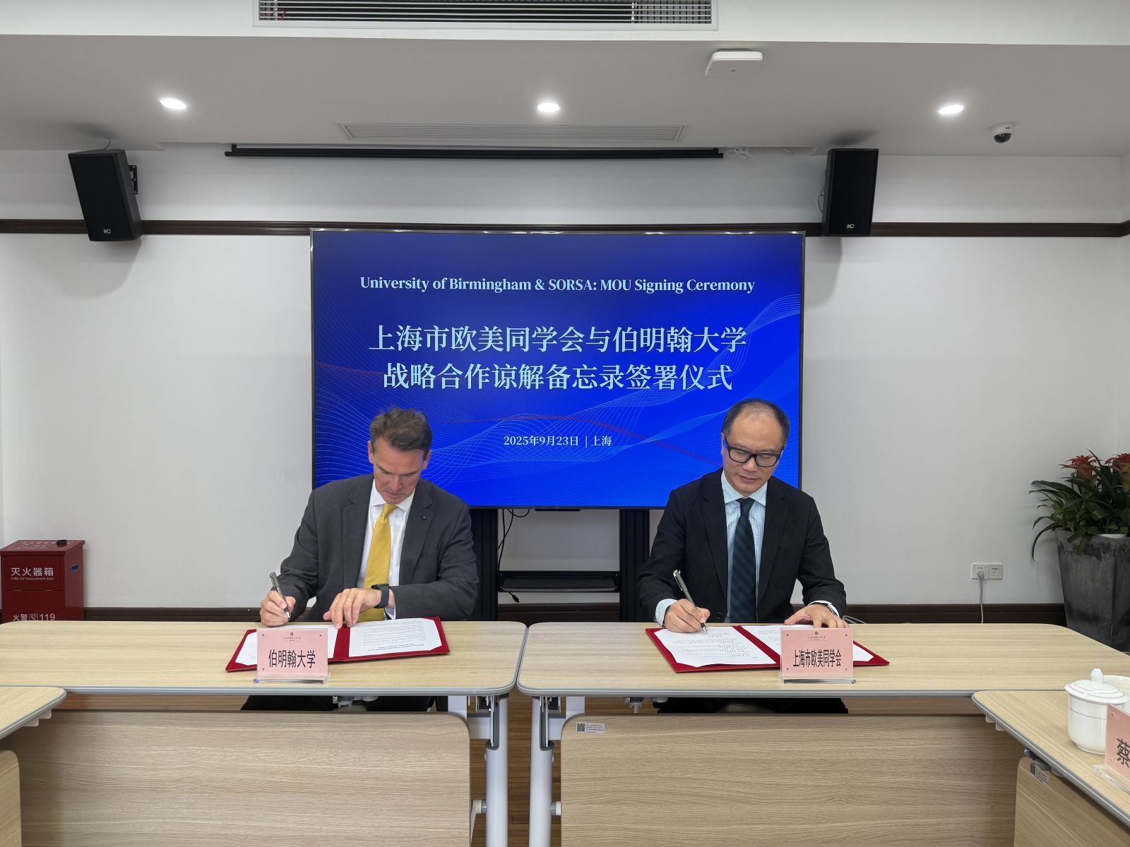 9月23日,上海市欧美同学会与英国伯明翰大学在上海市留学人员之家成功举行战略合作谅解备忘录签署仪式。