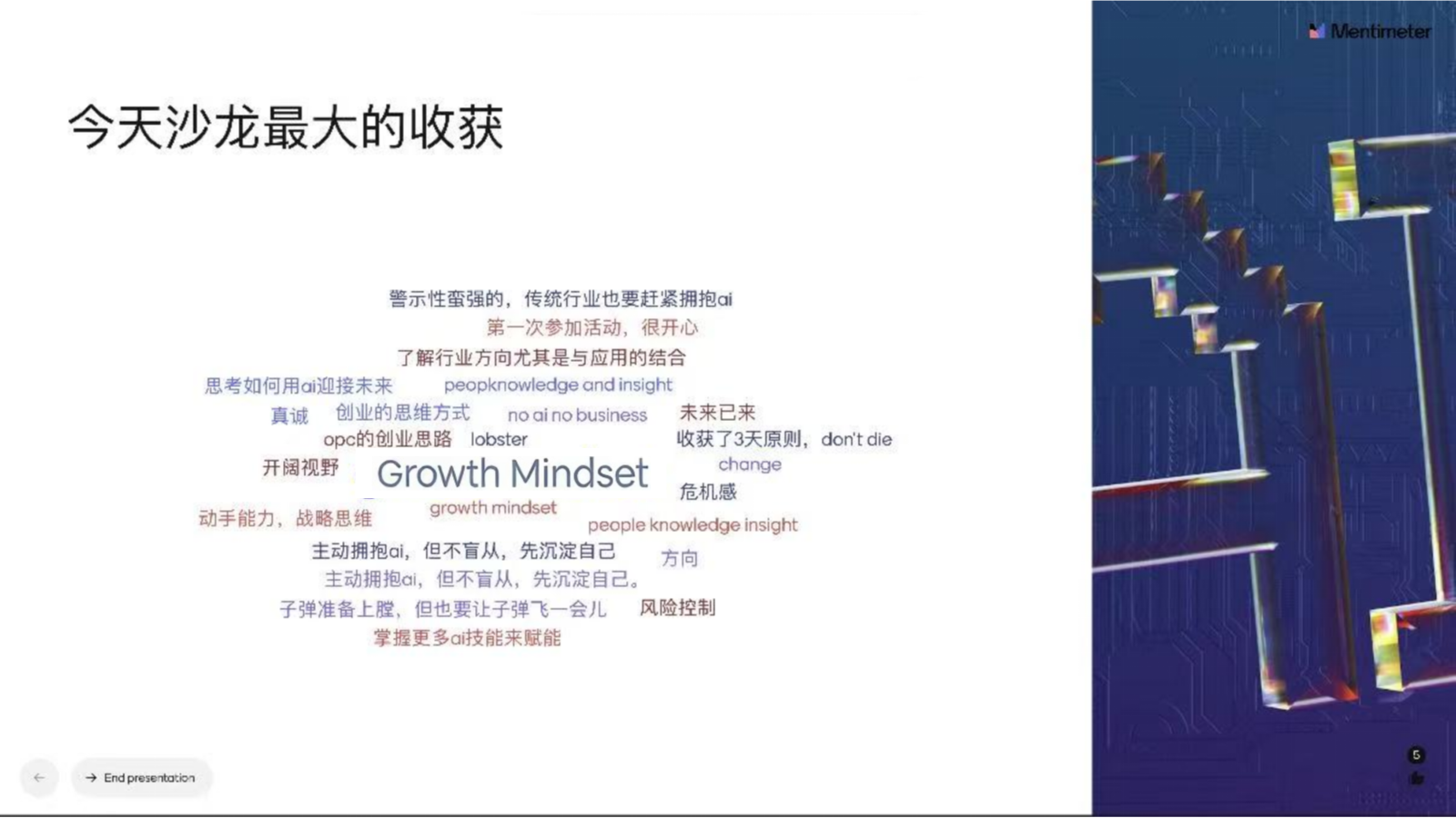 活动下半场,张鹏飞、刘钢、吴俊伟与宝顶创投基金合伙人陈冉、曌乾组织教练骆毅平围绕AI时代的机会、组织与能力三个核心问题展开圆桌对话。现场碰撞出几条共识:AI时代的创业机会在于垂直场景的端侧落地、虚拟与物理的交界面,以及用AI改造现有业务;好的组织不能依赖创始人个人,应建立“离开创始人也能正常运营”的系统;创业者最核心的素养是成长型心智、持续的学习力、行动力与韧性;面对AI带来的技术平权,真正的壁垒是拥抱变化的态度和快速学习的能力。正如一位嘉宾所说:“AI战国时代,乾坤未定,你我皆是黑马。”