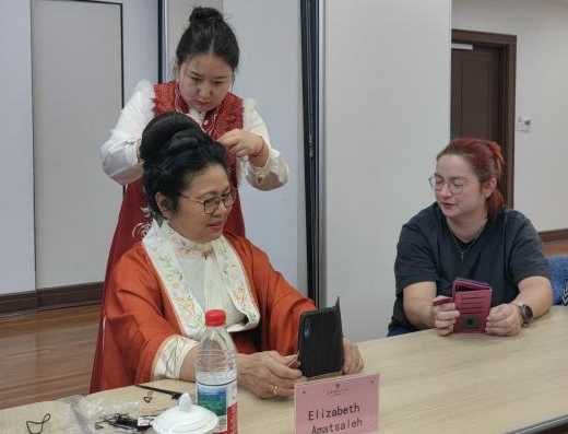 现场开展了汉服妆造体验活动,为海外嘉宾提供服饰搭配、妆容造型的全流程细致指导。当身着传统汉服的外宾亮相时,现场氛围格外热烈。嘉宾们对汉服的审美设计赞不绝口,纷纷表示将进一步深入学习汉服文化,部分嘉宾更计划购置汉服融入日常穿搭,以实际行动成为汉服文化的海外传播者。