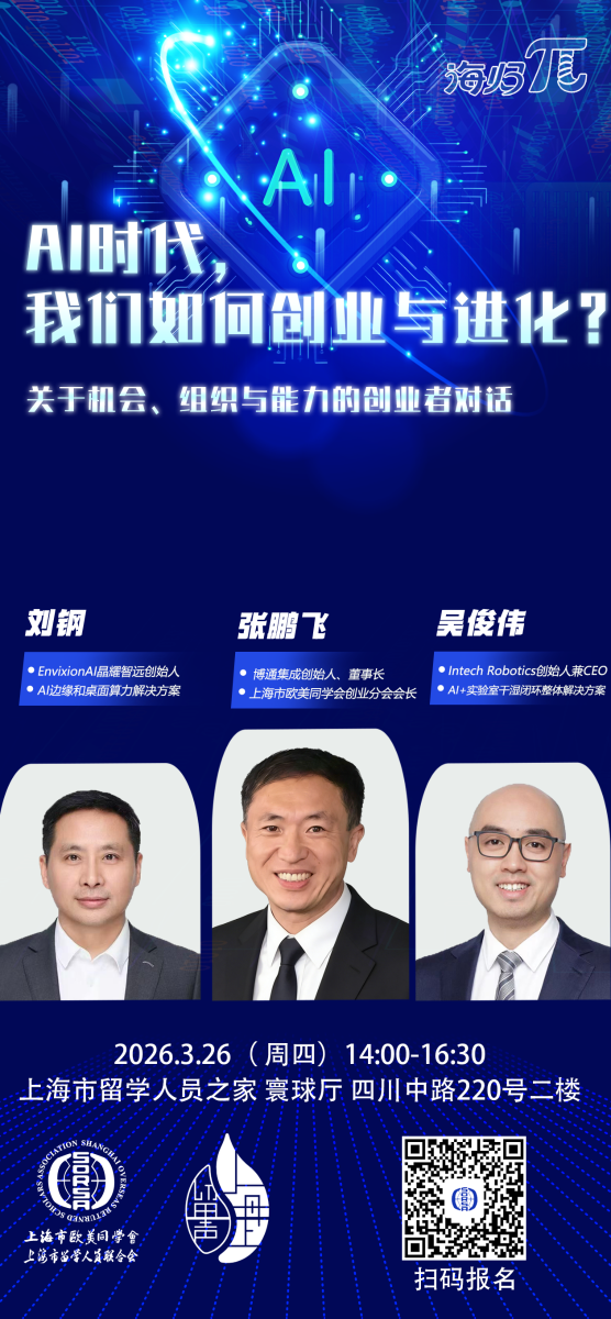 作为上海市欧美同学会2026年全新打造的品牌平台,“海归π”致力于赋能海归成长、构建跨界融合的人才生态,今年陆续推出50场精品活动,聚焦海归群体多元需求,覆盖创业赋能、职场进阶、科技前沿、人文雅集、生活休闲五大维度,赋能海归成长与价值释放,构建跨域融合的人才生态,期待学长们积极参与。