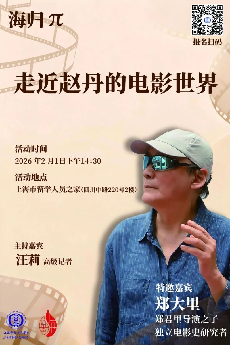 2025年是中国电影表演艺术奠基人赵丹先生诞生110周年,为延续这份纪念与致敬,2月1日,上海市欧美同学会将在上海市留学人员之家举办“海归π”系列活动——走近赵丹的电影世界,特邀郑君里导演之子、独立电影史研究者郑大里主讲。