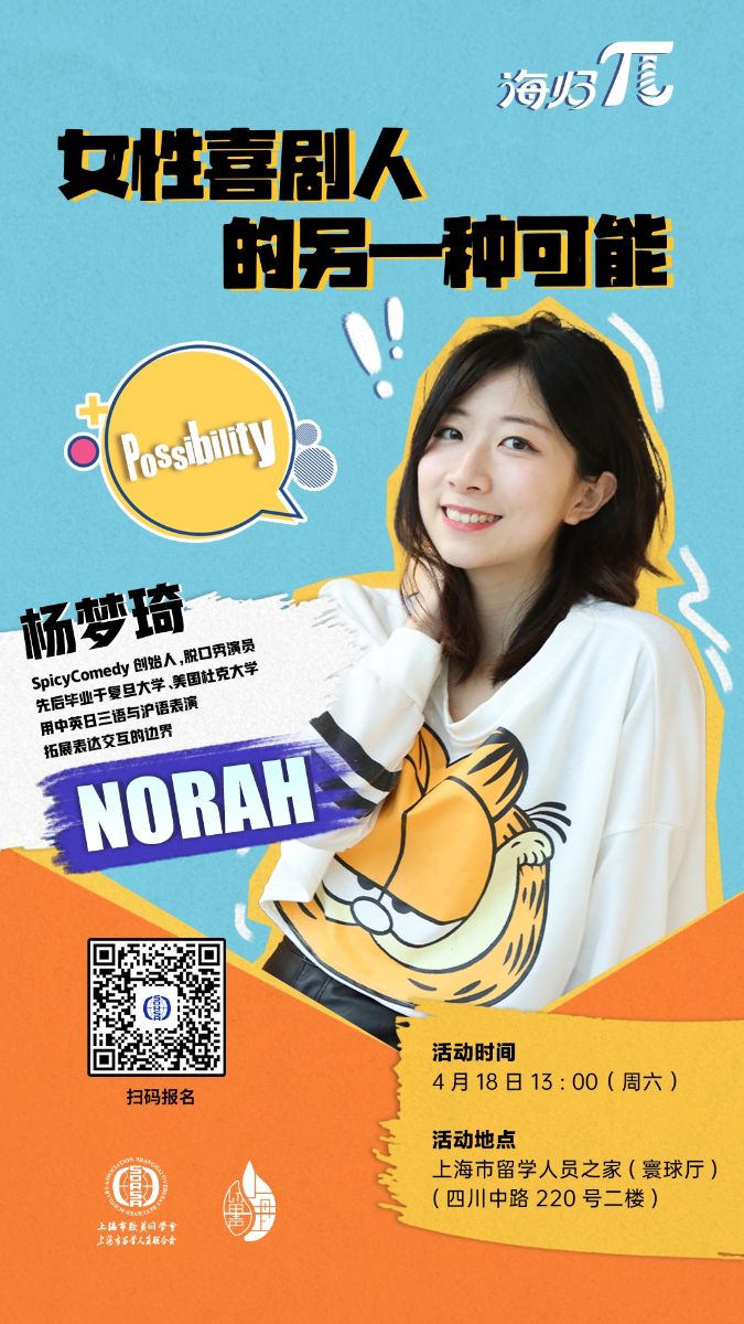 上海市欧美同学会“海归π”系列活动邀请到一位自带海归基因的喜剧从业者、SpicyComedy创始人、国内首位中英日三语及沪语脱口秀演员,先后毕业于复旦大学、杜克大学的杨梦琦Norah,和大家一起聊聊“多面人生”的无限可能。