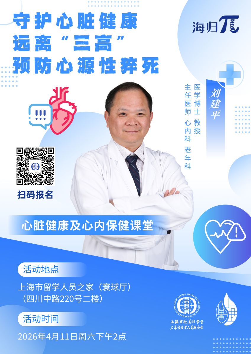 上海市欧美同学会“海归π”系列活动特邀上海交通大学医学院附属仁济医院原心内副主任医师、老年科主任刘建平博士,为大家带来心脏健康及心内保健课堂的公益分享。