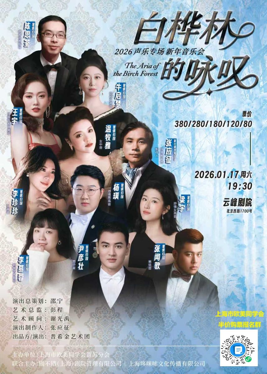 新年伊始,歌声随晨光而至。1月17日,由上海市欧美同学会留苏分会普希金艺术团倾情呈现的 “白桦林的咏叹”2026声乐专场新年音乐会,诚邀您共赴一场冬日里的艺术盛宴。