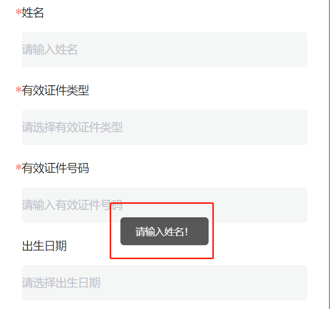 点击提交按钮,若必填信息未填写的情况,系统将做出相关提示信息,提醒申请人将信息补充完成方可提交。