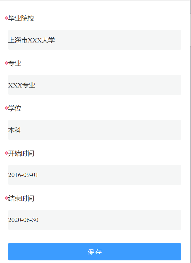 信息填写完成,点击保存按钮,已填写信息保存成功并在对应信息栏显示。