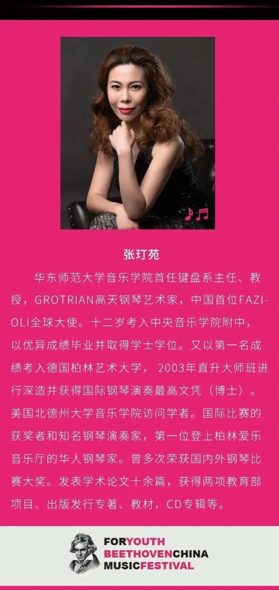 上海市欧美同学会理事,旅德钢琴家、钢琴博士、硕士生导师、华东师范大学音乐学院教授、首任键盘系主任,首届中德贝多芬青少年钢琴大赛中方评审主席,中国首位 FAZIOLI 全球大使。深耕德奥古典音乐阐释,长期致力于古典音乐作品的研究与导赏。