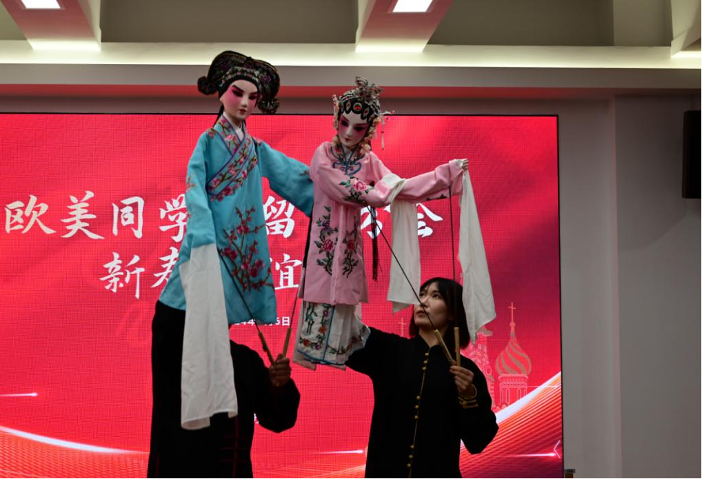 年会下半场,精彩节目纷纷登场。上海音乐学院副教授谢光禹学长和他的9名学生带来了《音乐会波兰舞曲》《野蜂飞舞》两首大提琴作品。俄罗斯国立师范大学艺术学博士、任教于上海戏剧学院偶剧系的秦峰和学生带来了杖头木偶表演《牡丹亭·惊梦》,让所有人感受到了木偶这一国家级非遗以及中华传统文化的魅力。柴可夫斯基音乐学院声乐博士、花腔女高音李珍珍学长带来了根据宋代辛弃疾词创作的艺术歌曲《青玉案·元夕》。由分会副会长、上外俄欧亚学院长许宏和张婷婷教授指导的俄语版音乐剧《简爱》片段也让人眼睛一亮。9名上外学生的表演活泼,俄语流利,充满青春气息。
