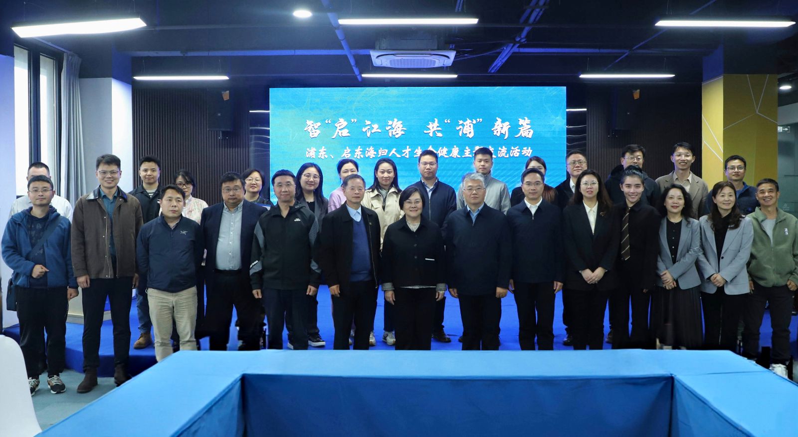 启东市委统战部、侨联、市场监管局、海工园(寅阳镇)、经济开发区、圆陀角旅游度假区、生命健康科技园、人民医院相关负责人及启东海归人才代表与浦东分会学长代表参加活动。