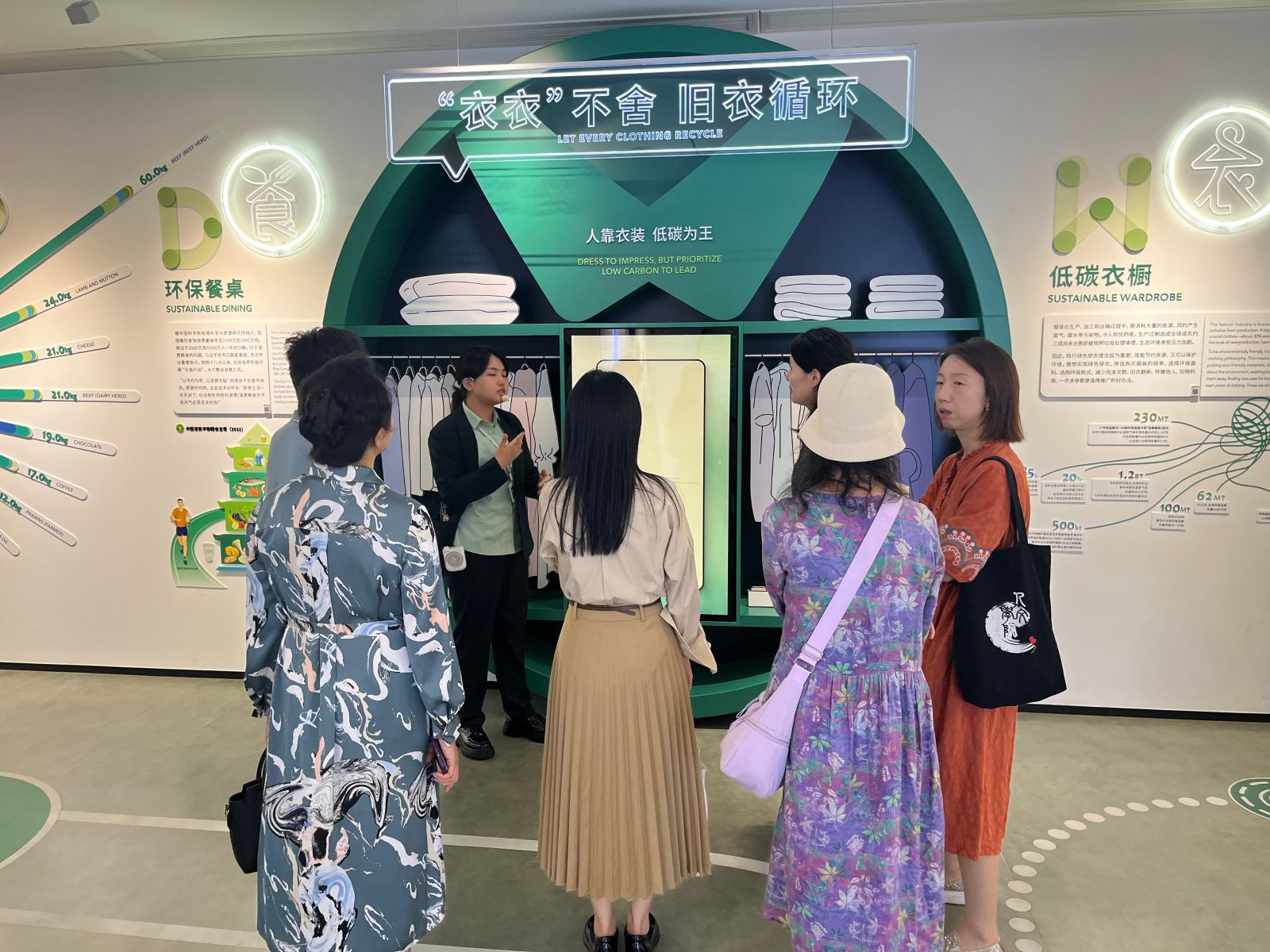 随后,会员们移步至和平书院内的“碳秘馆”,继续环保文化之旅。通过沉浸式影片《假如地球气温上升6度》和互动模拟游戏,深入了解了碳排放与气候变化的关系。