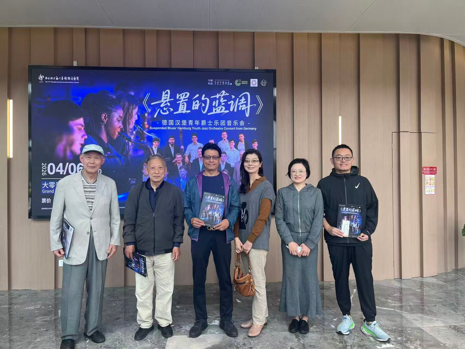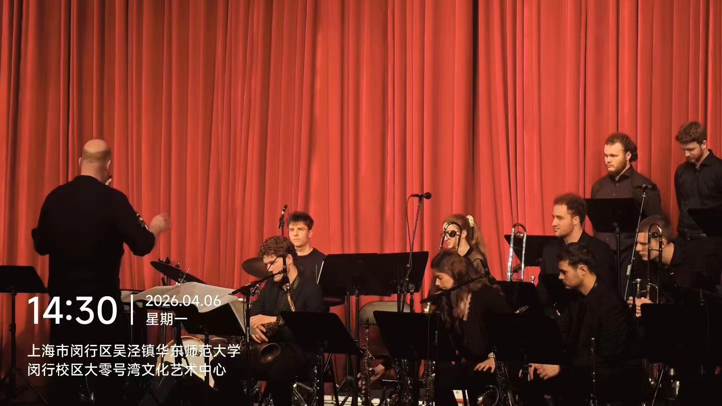 4月6日,留法分会组织会员齐聚大零号湾文化艺术中心,共同观摩第41届上海之春国际音乐节“悬置的蓝调”德国汉堡青年爵士乐团音乐会。