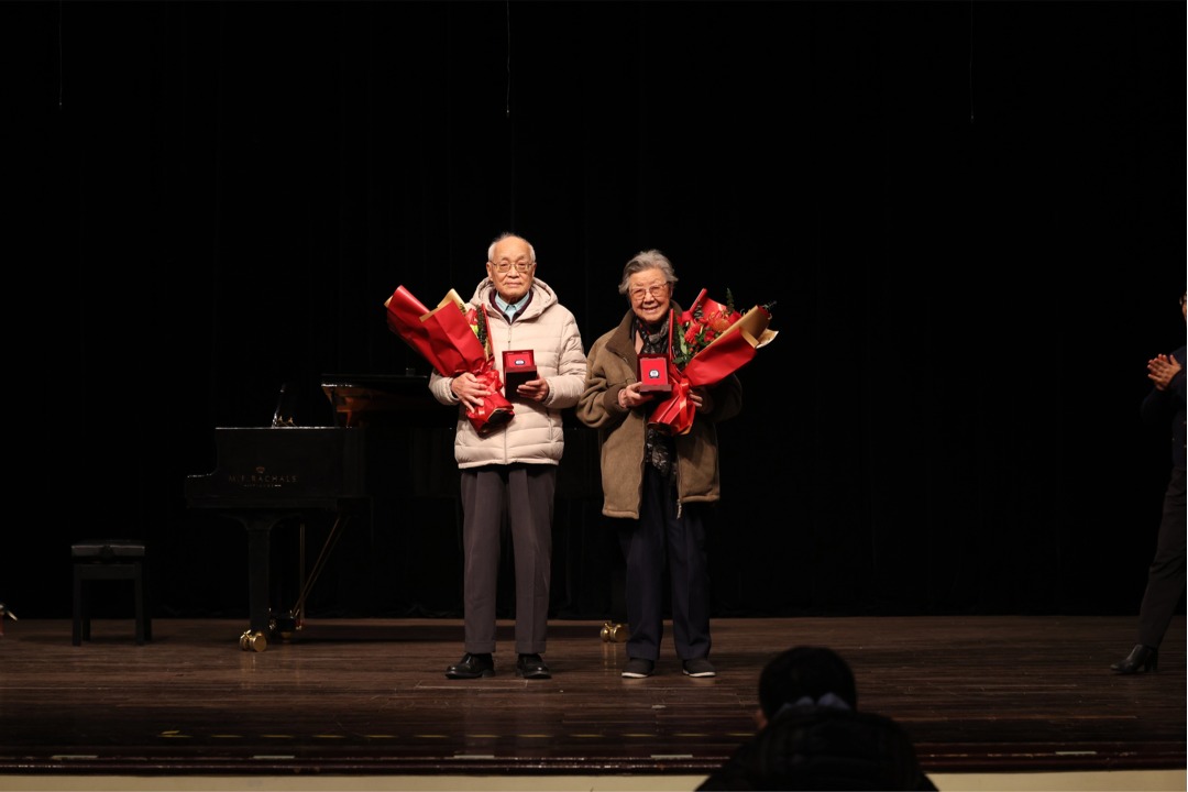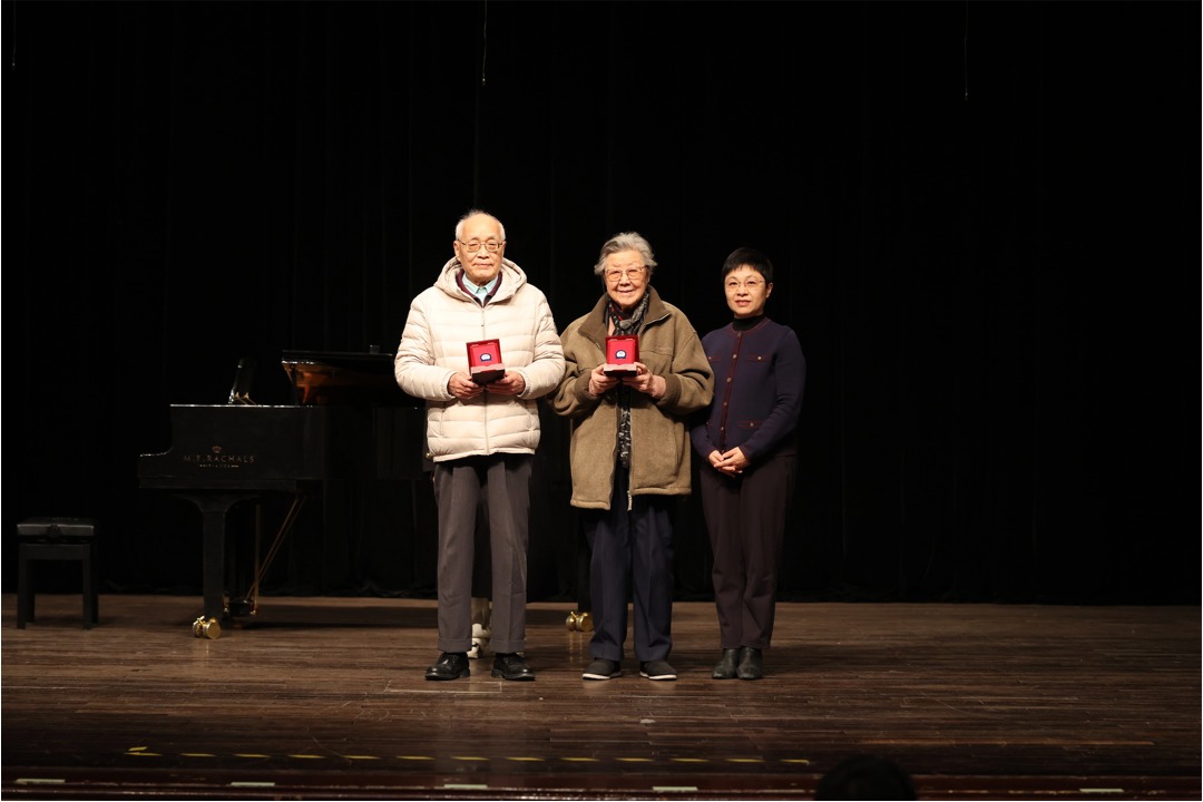 市欧美同学会专职副会长邹芳出席并为陈松梅、周祖毅两位学长颁发“入会40周年”纪念章。