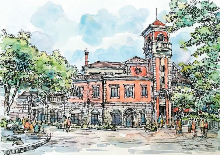6.小马走到多伦路中间的道路转角处,看到一幢红白相间的古典西式建筑——夕拾钟楼。他非常喜欢这座建筑的名字,它是用鲁迅文集来命名的,颇具文艺色彩。在建筑前面,许多游人在闲坐或拍照打卡,一派岁月静好。