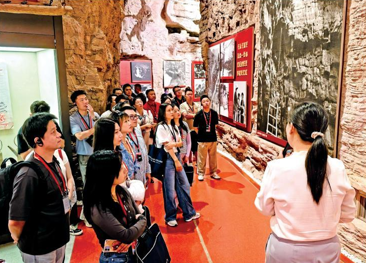 当天上午,学员们来到红旗渠主干渠。秋雨初歇,石壁湿滑,渠水在脚下奔流。科技企业总经理陈铿俯身触摸凿痕,感慨道:“来到红旗渠实地学习,我在进入和离开之时,分别用手触摸了一干渠与二干渠的石墙,那一刻,仿佛穿越时空,更加深刻地感受到当年林县人民‘不认命、不服输、敢于战天斗地的英雄气概’。”