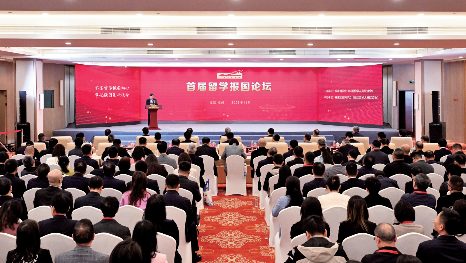 2025年11月21日,由欧美同学会主办,以“不忘留学报国初心 牢记强国复兴使命”为主题的首届留学报国论坛在福建省福州市隆重开幕。全国人大常委会副委员长、欧美同学会会长丁仲礼出席论坛并致辞。福建省委书记、省人大常委会主任周祖翼在论坛上致辞。